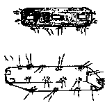 ...Il est 19 heures, ce 5 novembre 1990, la nuit est calme, le ciel étoilé. Au sud-ouest, je remarque haut dans le ciel une tache lumineuse d'un blanc cassé ayant la forme d'un petit nuage, que j'ai pensé éclairé par un rayon du Soleil. Soudain, je vois sortir de cette tache deux points lumineux scintillants orange qui allaient grossissant, dans une courbe descendante se dirigeant plein Est au début. Arrivés dans l'axe où je me trouvais, ils changent de cap et prennent la direction du Nord-Est. Je constate alors la présence de 2 feux de position rouges pâles sensiblement écartés, clignotant au milieu d'une masse sombre. A l'arrière de ces feux une traînée de condensation, comme laissent les avions à réaction volant à haute altitude (mais pas près du sol, or là maintenant c'était arrivé très près du sol !). Derrière la traînée droite, des feux clignotants orange, ressemblant à des étincelles s'échappant d'une tuyère. Sans un bruit, l'engin semblait glisser, pour disparaître derrière un rideau de pins. Au sud-ouest, la tache lumineuse est toujours là-haut, mais elle a changé de forme. Elle ressemble à présent à une grosse poire, tête en bas...